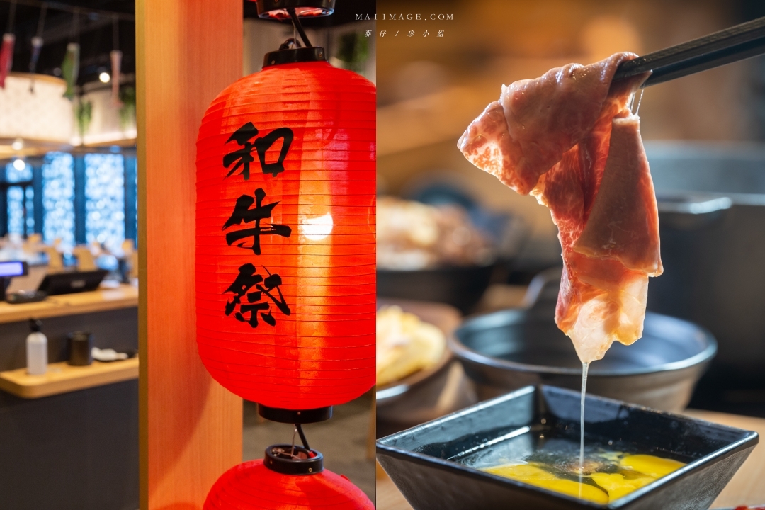 【和牛祭食放題】在微風南山的5樓,紅通通大燈籠相當醒目。和牛祭是樂軒集團旗下的全新品牌,打破以往對日本和牛只能吃得到少部分部位的迷思,引進來自九州的A5和牛,主打整頭牛無限量供應吃到飽,這在和牛鍋物界來說絕對是創舉。
